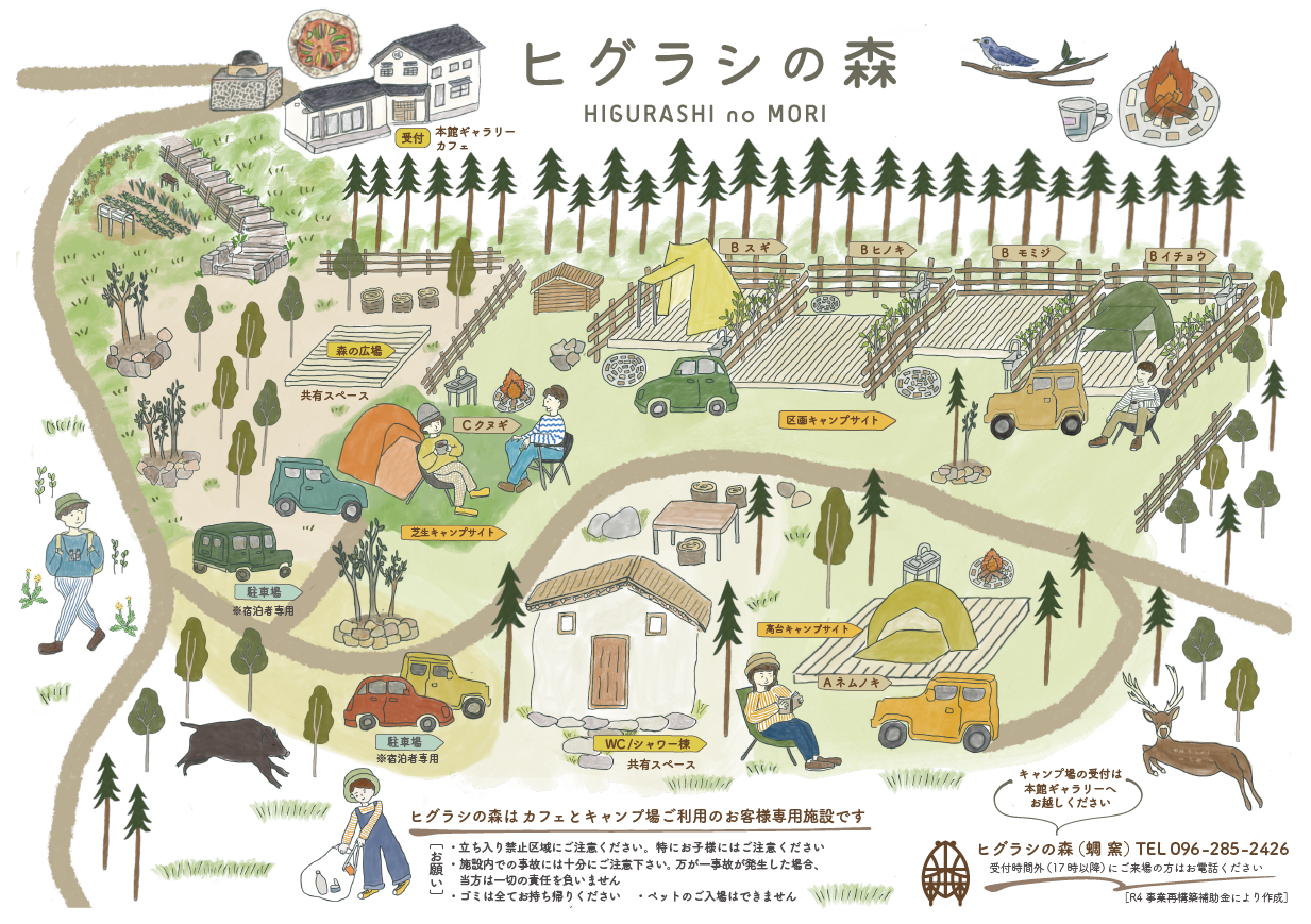 ヒグラシの森(蜩窯)〒861-3323熊本県上益城郡御船町田代8405-375 電話: 096-285-2426 http://higurasigama.com/ |